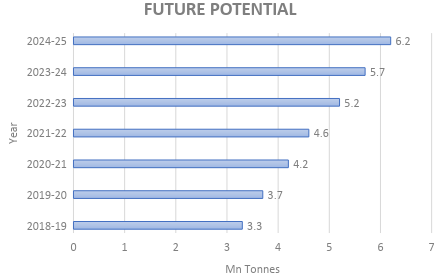 In India in the year 2018-19 demand for Aluminium Ingot was 3.3 million, and is projected to increase to 6.21 million tons by 2024-25.